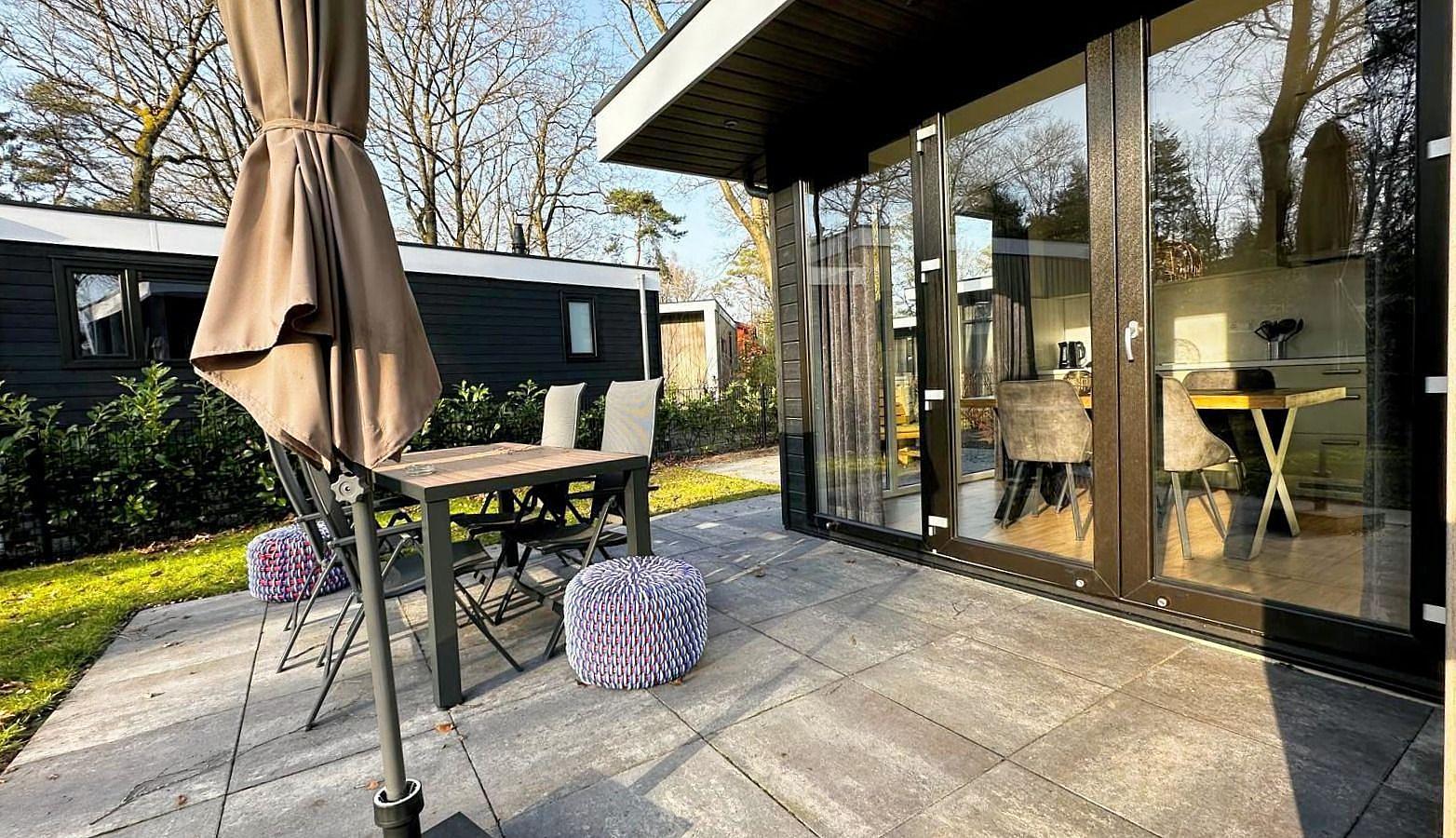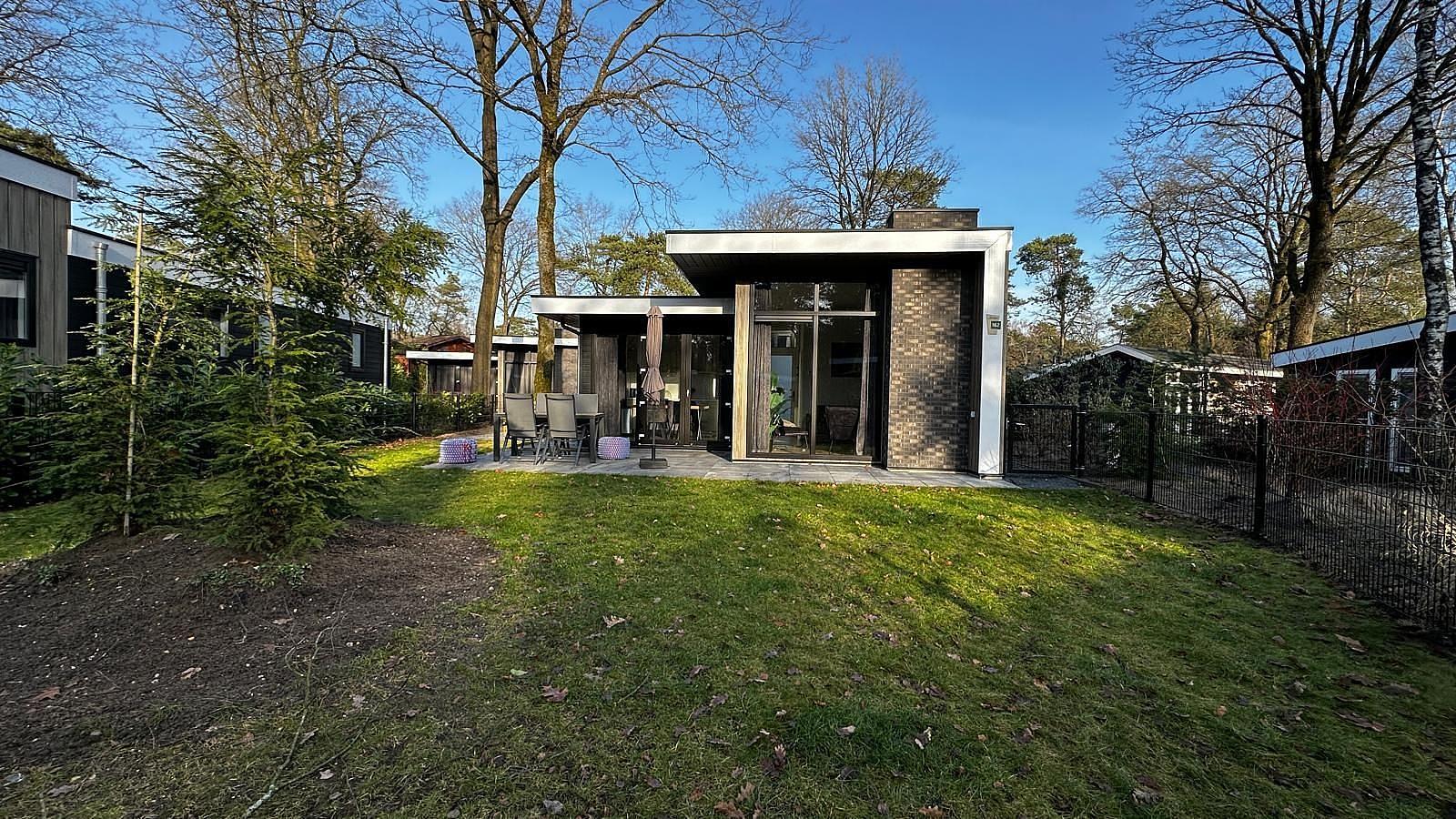 Vakantiewoning type Hertenhoeve Z op kavel R162 en is in 2024 gebouwd en biedt alles voor een zorgeloos verblijf op Vakantiepark De Rimboe & De Woeste Hoogte.